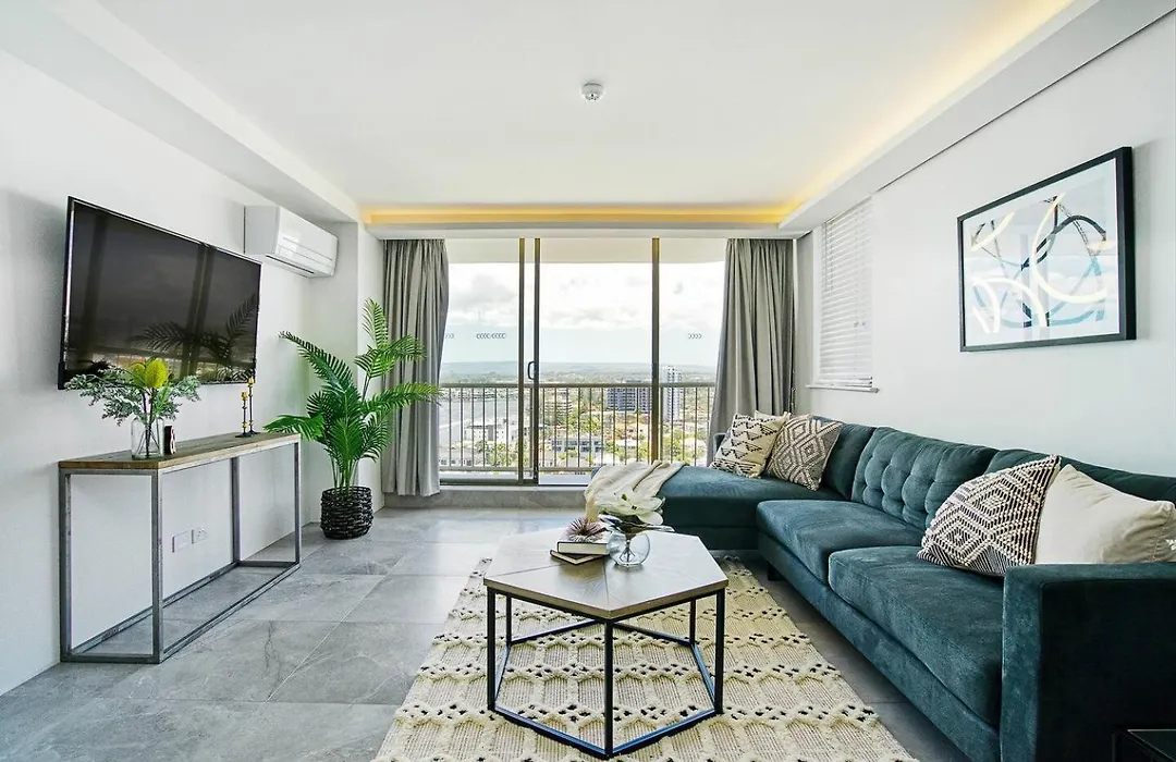 Les logements Paradise Bound - Central And Modern At Surfers comprend un balcon, un coin salon et une cuisine et offre une vue sur la ville. L'appartement offre 3 chambres à coucher. Les clients sont invités à utiliser 2 salles de bain. Un sèche-cheveux et des draps de bain sont accessibles.